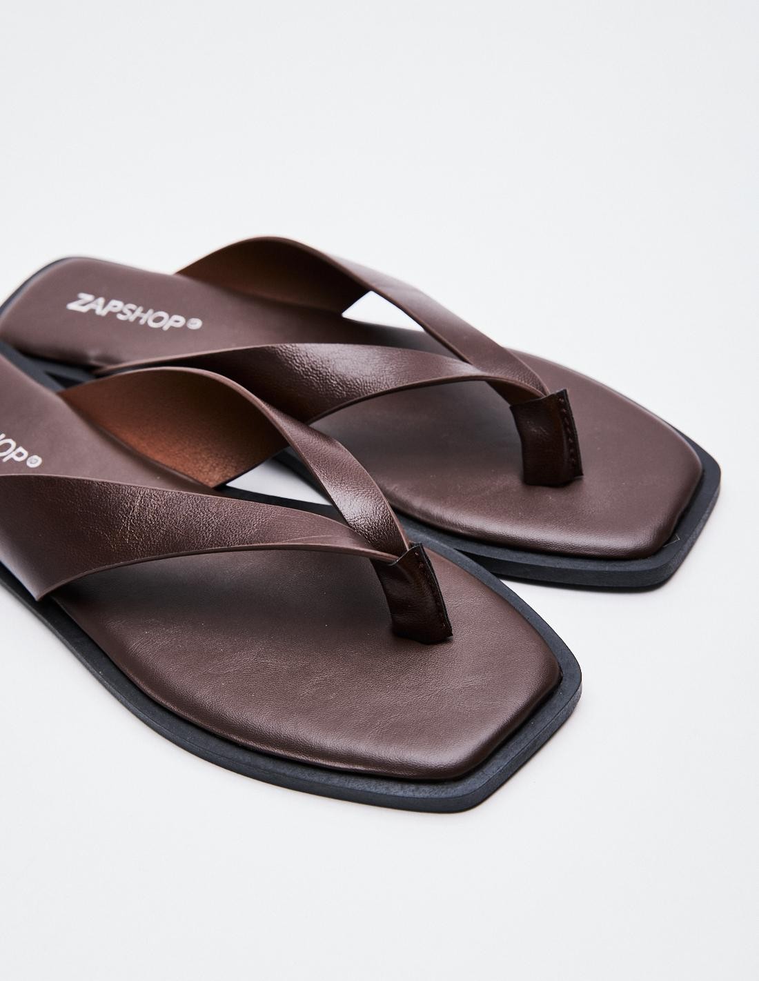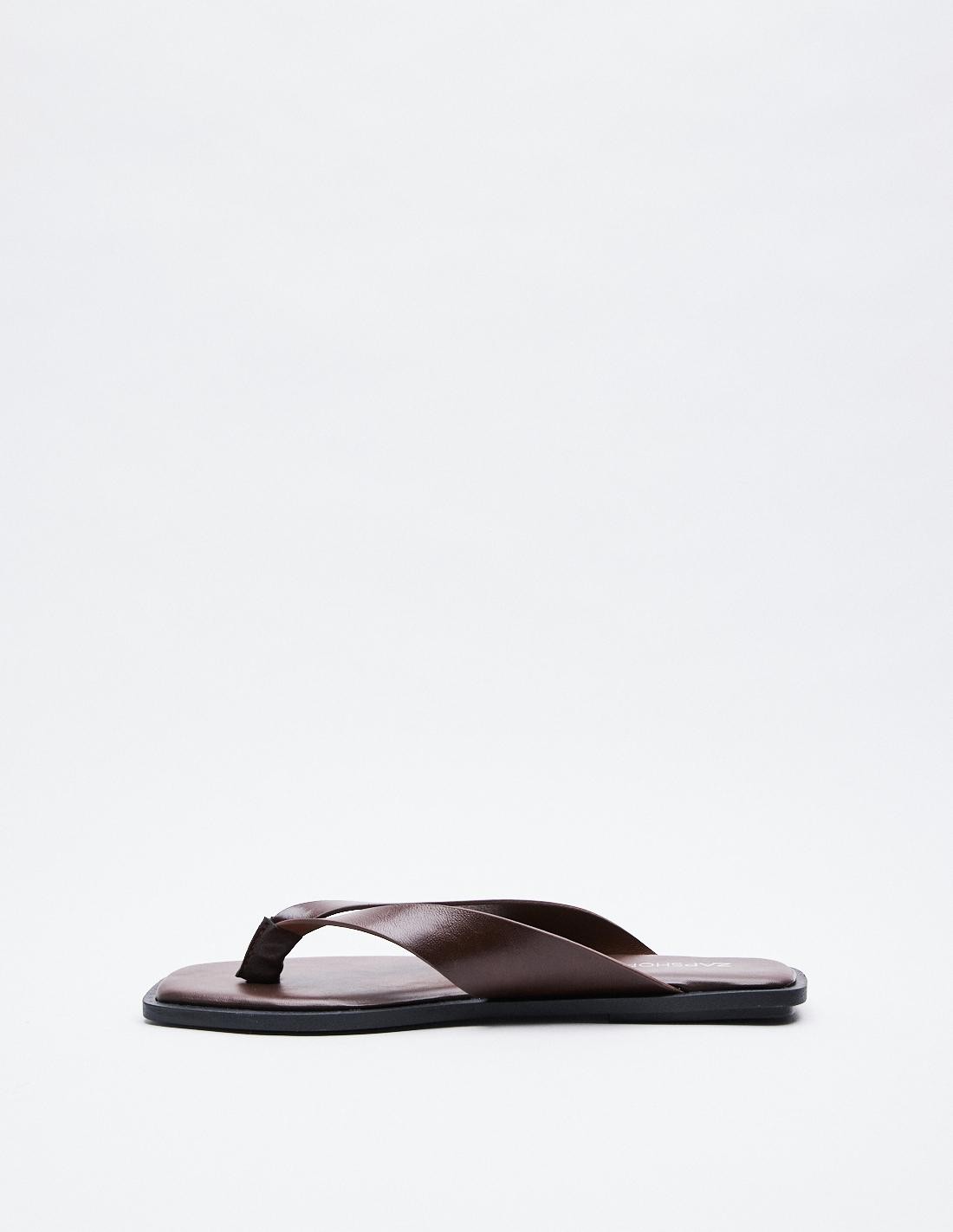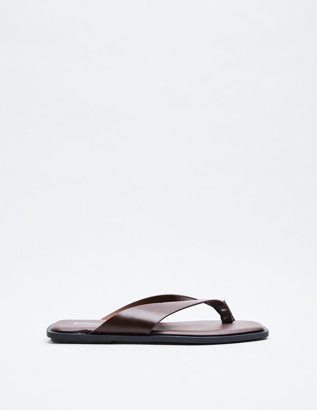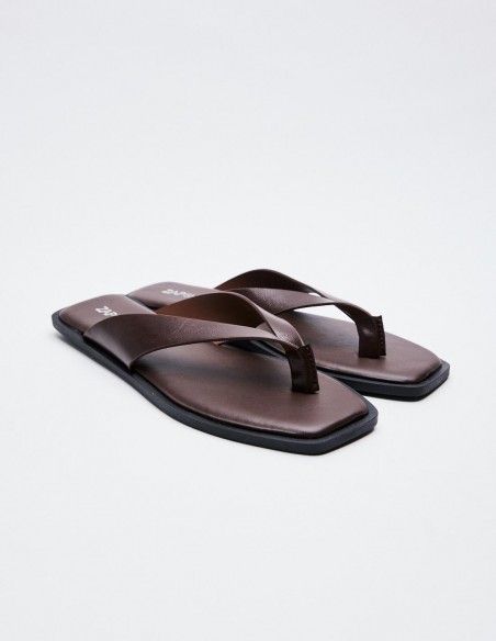 Zapato tipo sandalia plana. Tira con posición para el dedo. Acabado en punta redonda. Altura de la suela: 1 cm