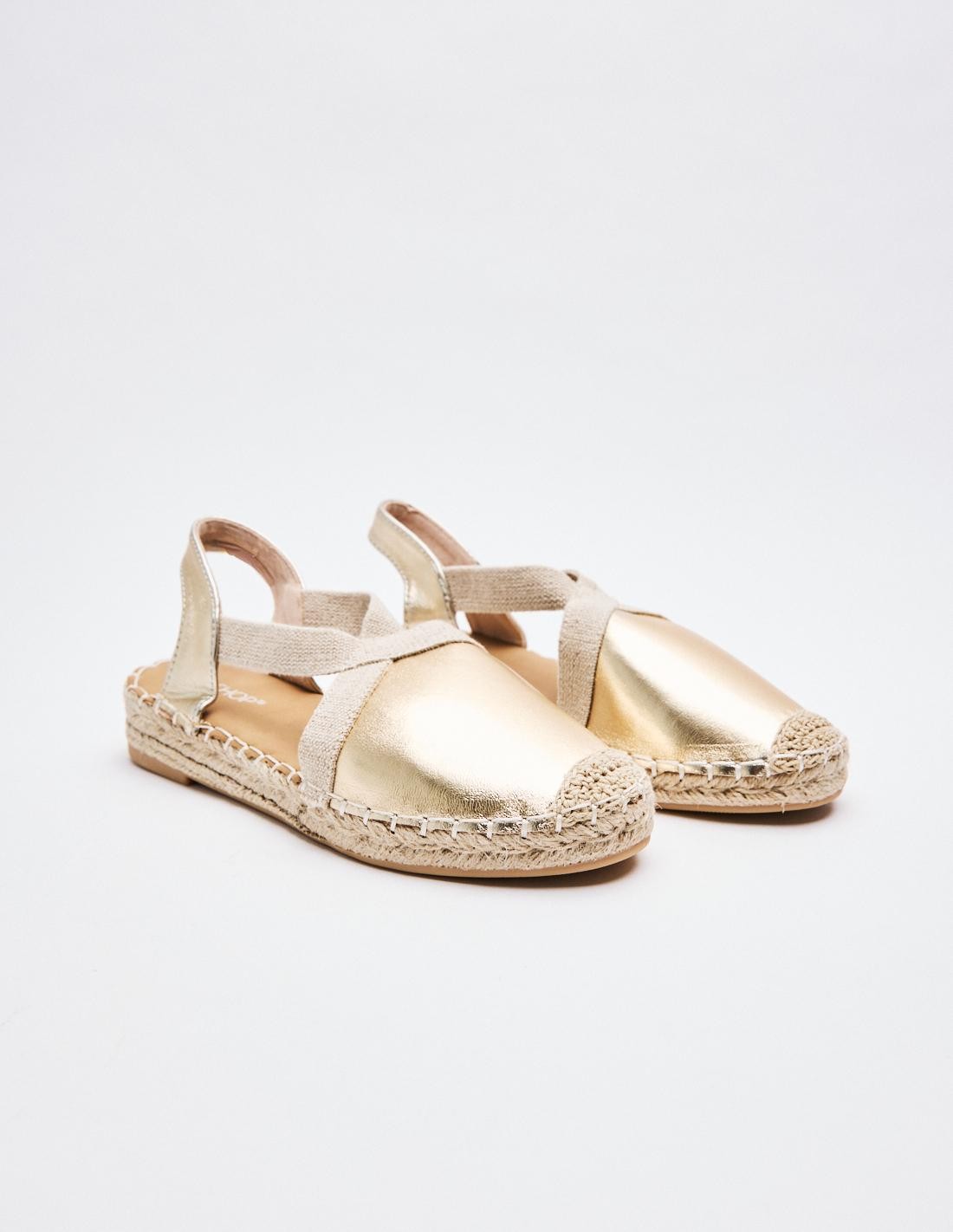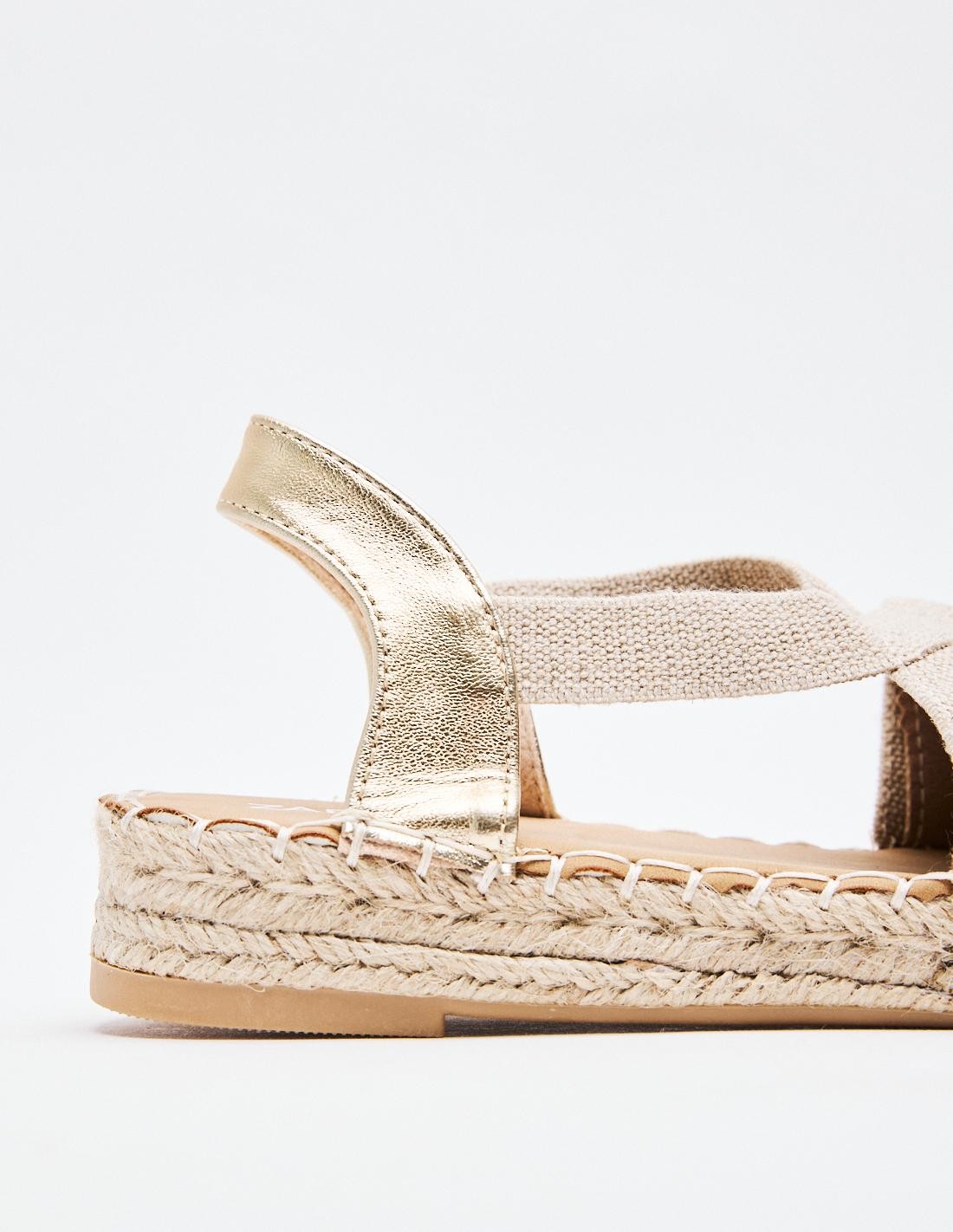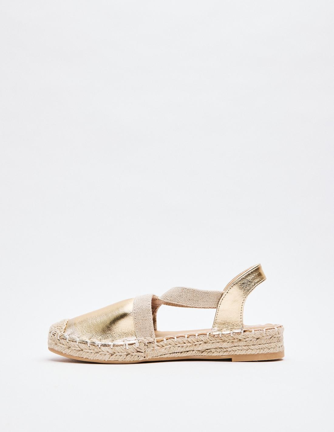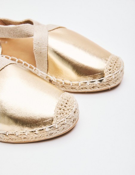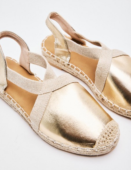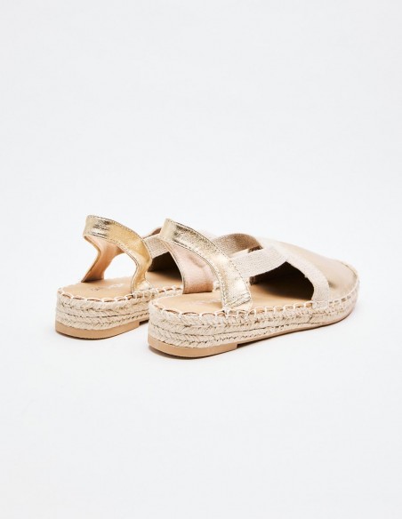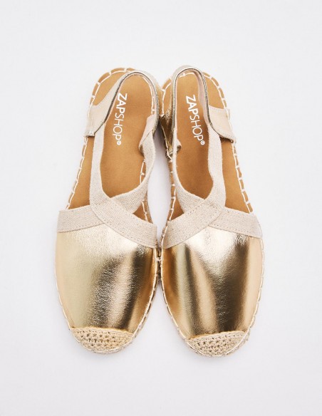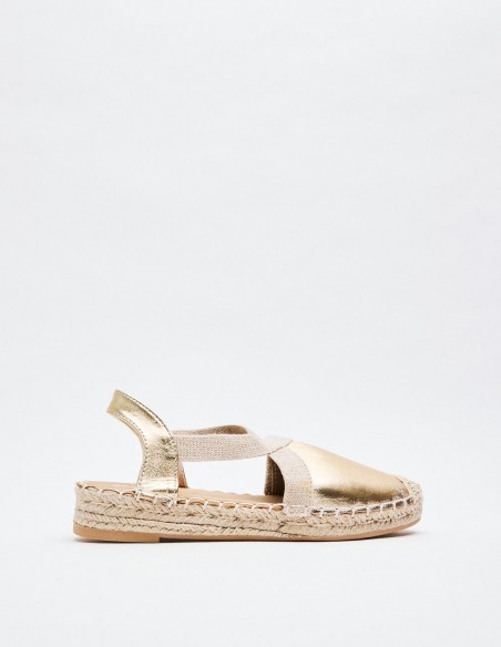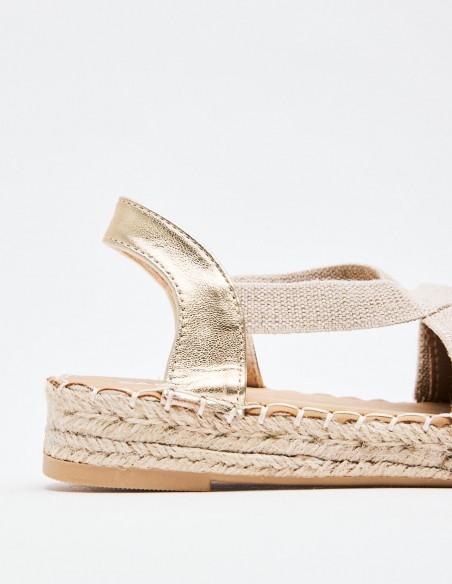 Alpargatas de mujer en combinacion de material . Destaca detalle de puntera cerrada. Cierre mediante tira elástica ajustada al talón . Suela en combinacion de materiales. Altuta: 2 cm.